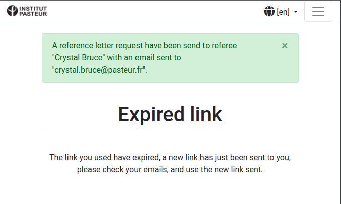 In fact, an account is already present in the database, associated to the email on which you received the invitation. To gain control of it, go to https://hub-jobs2026.pasteur.cloud/accounts/login/?next=/, click on “Reset My password”, follow the process, and you will control it.